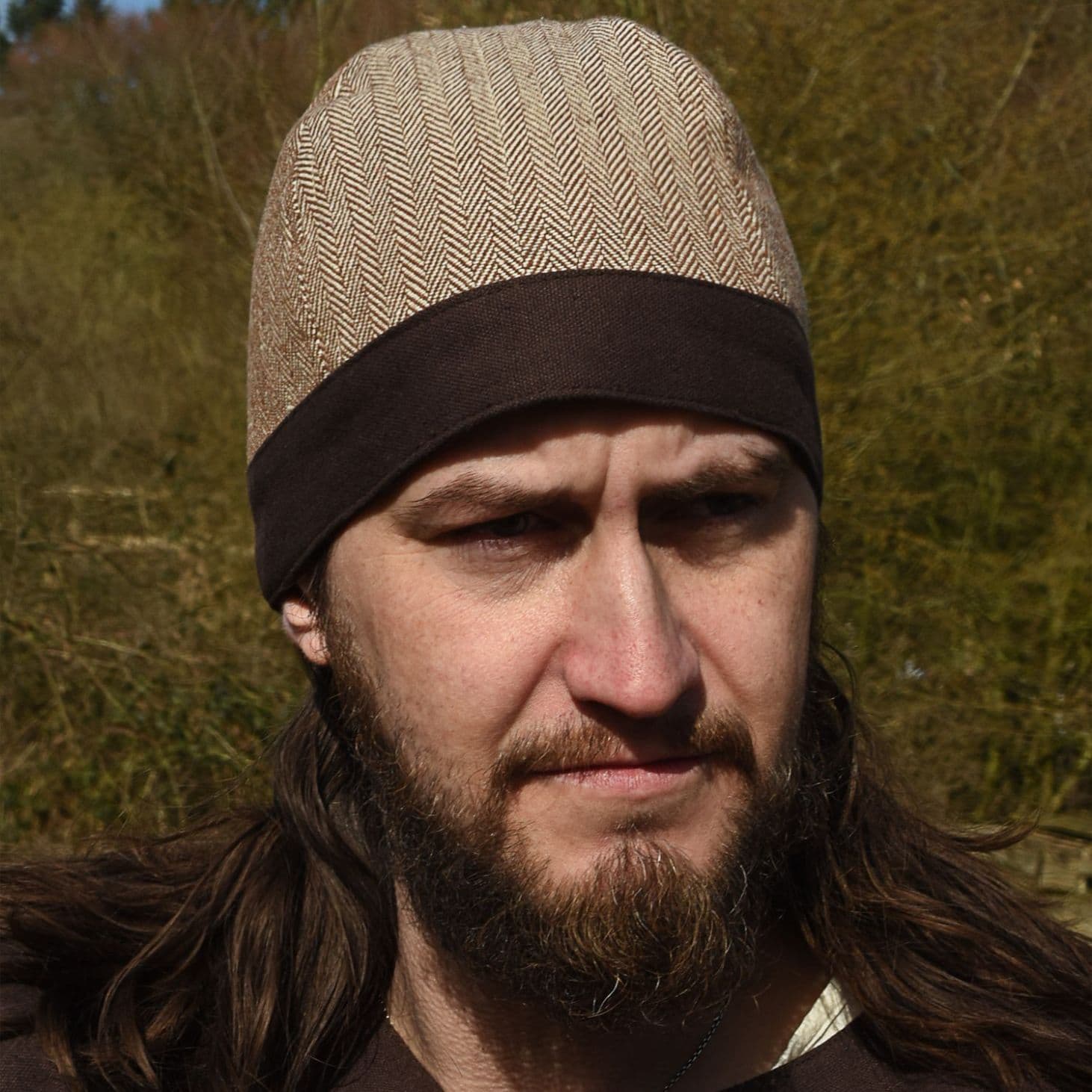 A cap was common in the Middle Ages for both sexes. Caps of this type, however, we're worn only by men. They were available in a simple design and also with a fur trim. There is documentation from Haithabu and also Birka.
