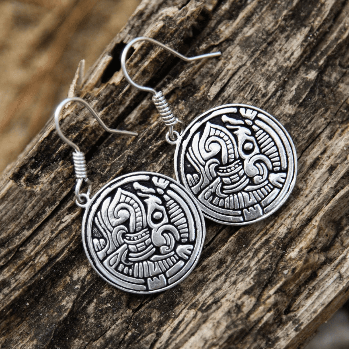Viking Earrings - Gripping Beast Motif, Pair, silver-plated brass